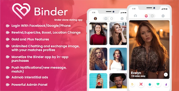 Binder is a more reliable Tinder clone App and professionally constructed as an alternative to the Binder dating service.Find your perfect partner with this Binder app & let the relationship bloom into a harmony.
