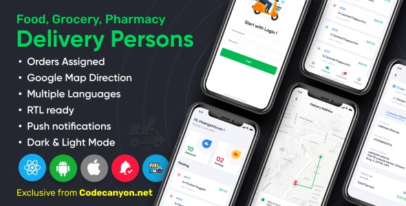 Delivery Person for Food, Grocery, Pharmacy, Stores React Native – WordPress Woocommerce App