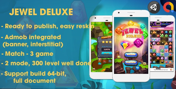 Jewel Deluxe – Unity Complete Project (Android + iOS + AdMob)